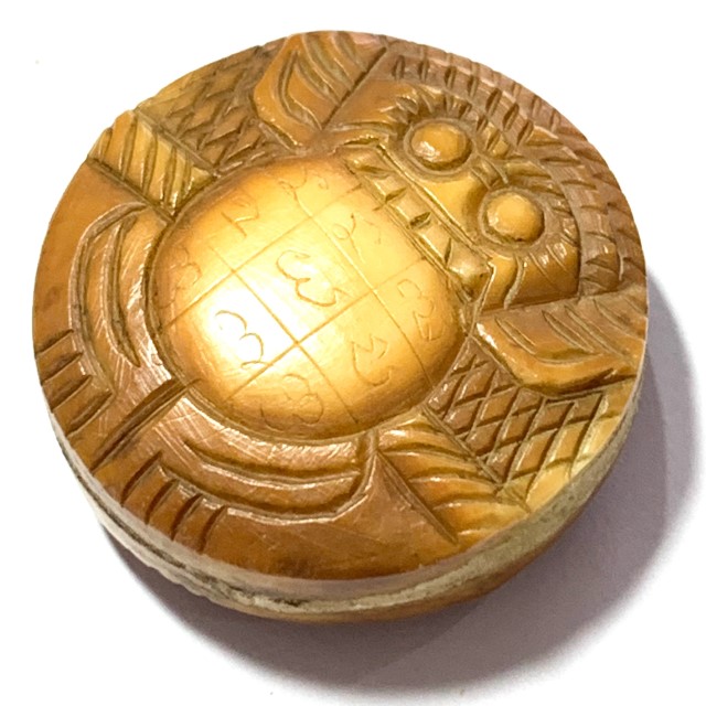 But hand carved pieces of master class sacred artisanry talismanic amulets of Luang Phu Ya Tan Suan are among the most rare and difficult to encounter, and carry a relevant price for such Master-Class type amulets. Hand carved sacred Amulets of this level of Artisanry are considered to possess not only Sacred Magical Power, but are also considered antique works of Miniature Buddhist Arts, and are highly valued by not only simple devotees, but also by full time hunters, collectors of Master Class amulets. His Sacred Power was considered immeasurable, as devotees noticed that Luang Phu’s Look Om Chan Hmak betel areca balls, and his hair after head shaving, would turn into ‘Pratat’ relic crystals.