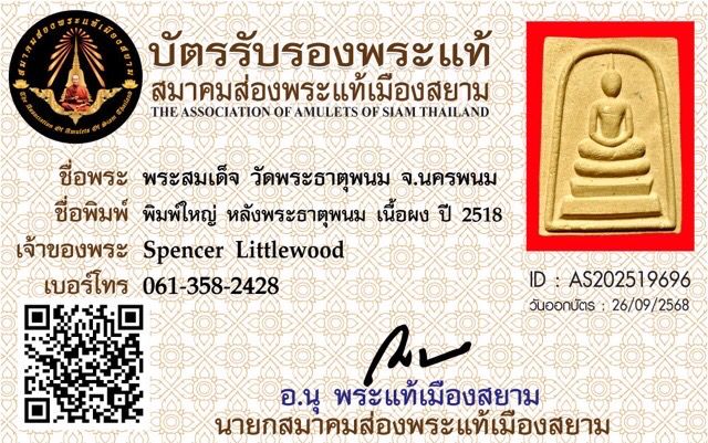 The rear face of the amulet features the Chedi Relic Stupa of Wat Phra That Phanom, with an aura of lightrays embossed into the rear face. Classed within the pantheon of amulets of Ajarn Fan Ajaro , the amulet contains immensely sacred powders within the Muan Sarn Clay, full of Puttakun Power, and Blessed by the top Masters of the North eastern Region of the Era.